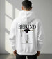 The hoodie features a striking, bold graphic on the back:
